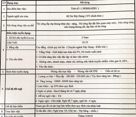 ☘️☘️☘️Công ty Du học – XKLĐ Phúc Thái tuyển TTS Nhật Bản quay lại lần 2: 🍁🍁🍁Mức lương: 180.000 – 200.000 yên/tháng ~ 36 –...